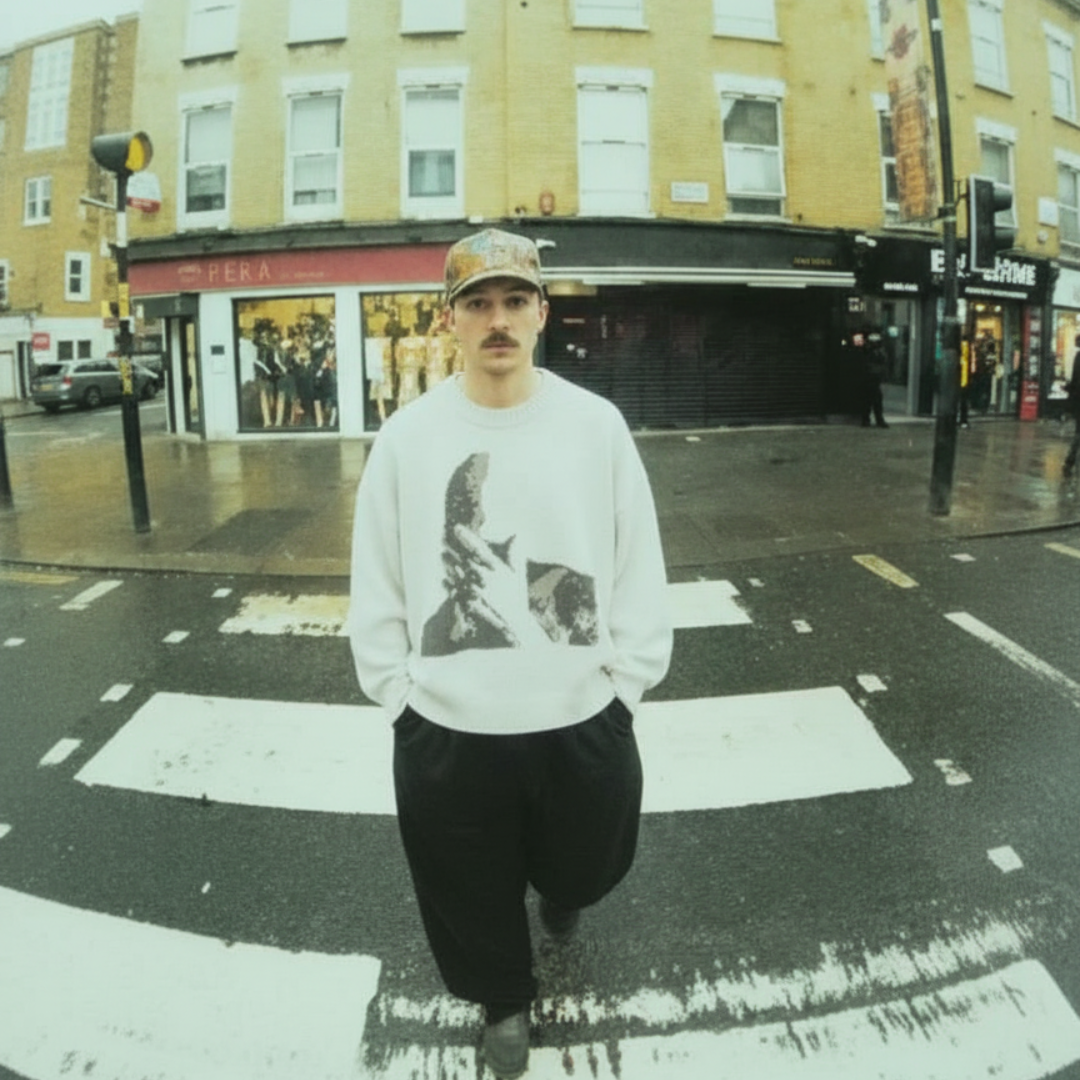 Its textured knit and muted palette give it a calm, lived-in feel — something you throw on when the night’s too still and the music’s too good to skip.